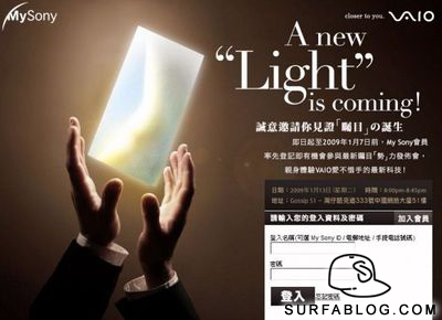 Sony ha inviato nei giorni scorsi ad una fetta dei propri clienti questa immagine che, pur non rivelando nulla, mette in mostra un nuovo prodotto soprannominato Light. Da varie indiscrezioni il prodotto sarebbe Sony Vaio P: un netbook, ovvero uno di quei computer estremamente portabili sfruttati solitamente per la semplice navigazione. Il prezzo dovrebbe attestarsi intorno ai 700€.
