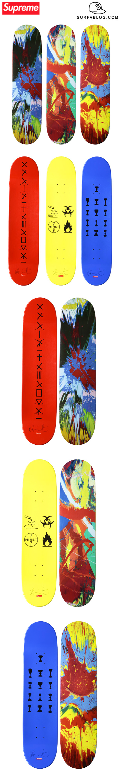 Supreme e Damien Hirst hanno collaborato per 3 tavole da skate. Damien Hirst è uno degli artisti più quotati al mondo. Damien è nato a Bristol nel 1965.