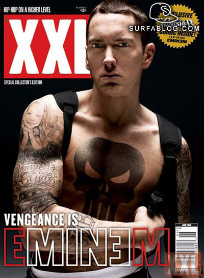 Il fatto strano, non è che Em sia su una copertina di una rivista, ma piuttosto che sia tornato a far parlare ufficialmente di sè dopo tanti anni di silenzio. Questa che vedete è la cover di Giugno 2009 di XXL Magazine, famoso giornale Hip Hop americano.