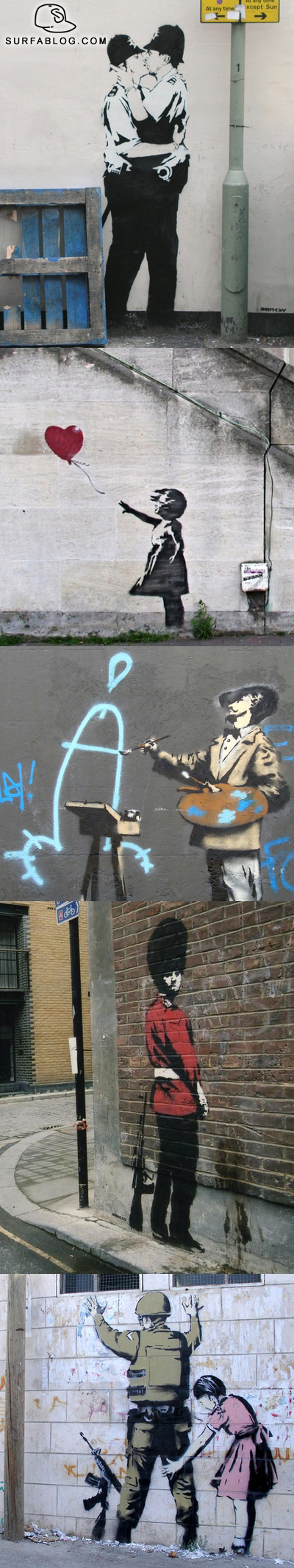 Eccovi l'ultima carrellata delle sue opere più famose. In questo post, le prime che lo hanno reso celebre, tra cui il bacio gay tra 2 poliziotti inglesi, realizzato davanti ad una questura.