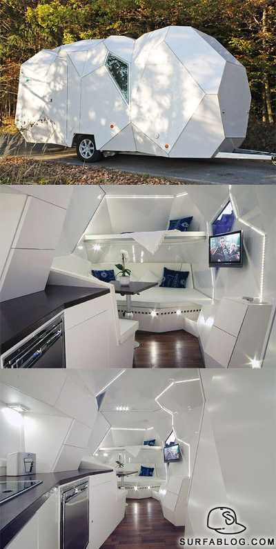 E' la roulotte estendibile creata dalla Mehrzelle. Sembra un pezzo d'arte moderna con le ruote.