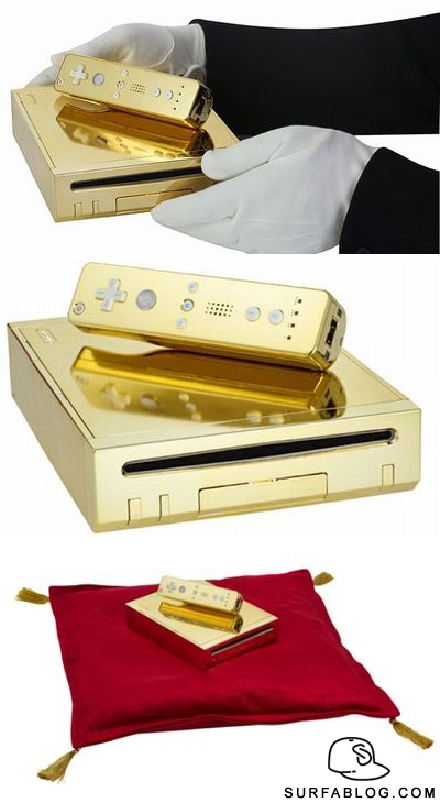 Eccovi le foto della Wii placcata d'oro regalata dalla Nintendo alla regina Elisabetta. Leggermente Kitsch.
