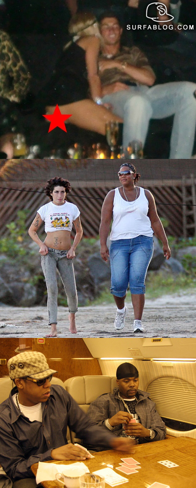 Nuove strane accoppiate oggi! Cristiano Ronaldo e Paris Hilton; lei da qualche giorno aveva lasciato il suo fidanzato.. ora si spiega il perchè! Amy Winehouse e Queen Latifah al mare! Per concludere Memphis Bleek e Jay Z si sparano un poker sul jet privato di quest'ultimo.