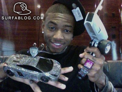Dopo il Big Ass Chain di T-Pain (per vedere il post clicca qui), torna l'appuntamento con il Chain 4 Respect. Protagonista di oggi è Soulja Boy con questo medaglione a forma di Lamborghini Gallardo nera. E' il primo chain telecomandabile ed infatti la macchina cammina. Mentre prima il rapper indossava solo collanoni d'oro giallo, ora lancia il trend degli accessori esclusivamente in colore nero. Crazy!