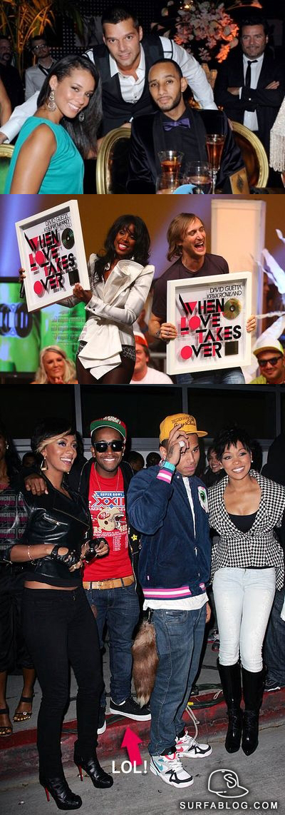 Nuove accoppiate di VIP oggi! Nella prima foto: Alicia Keys, Ricky Martin e Swizz Beats al compleanno di Jennifer Lopez. Nella seconda: Kelly Rowland e David Guetta in Germania con il platino della hit "When Love Takes Over". Per concludere: Keri Hilson, Omarion, Chris Brown e Monica sul set del video del nuovo singolo di Keri. Notare la furbata di Omarion sul gradino :D