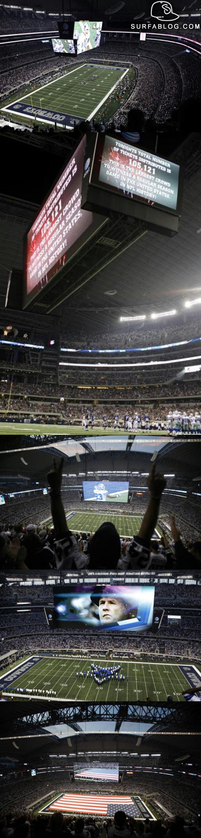 E' stato inaugurato il nuovo stadio di Dallas dove i Cow Boys giocheranno le partite di Nfl. L'impianto può contenere 110 mila spettatori ed è stato costruito con le più sofisticate novità tecnologiche. Solo il maxi schermo sopra il campo è costato 40 milioni di dollari.