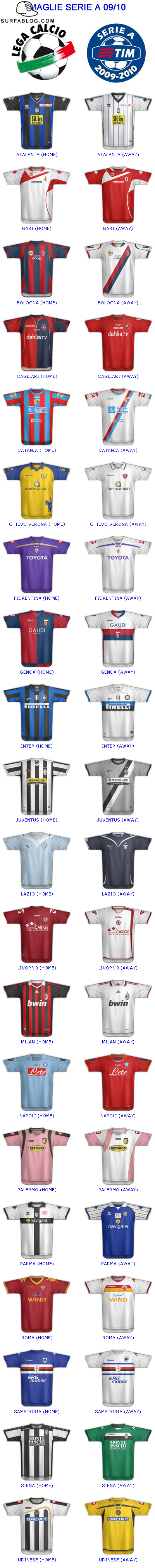 Abbiamo inaugurato questa nuova categoria di SURFAblog con le maglie ufficiali del campionato di calcio di Serie A della scorsa stagione. Oggi è il turno delle divise del 2009/2010. Big up ai ragazzi di