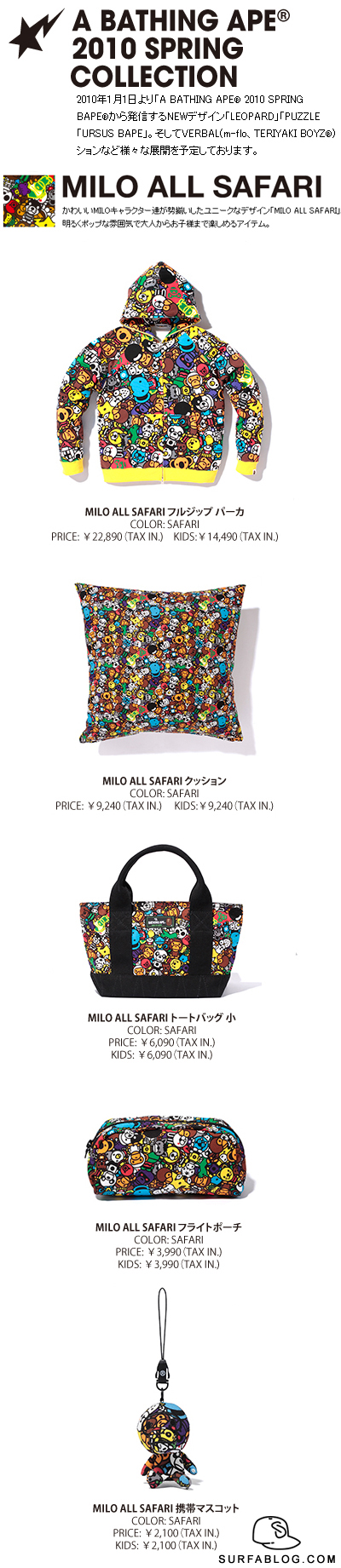 Bape Milo All Safari è la nuova linea A Bathing Ape della collezione primaverile del 2010. Per vedere l'altra collezione chiamata Bape Leopard