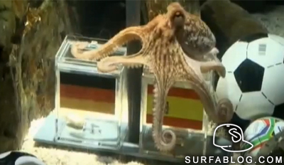 Spagna Vs Germania è finita 1 a 0 con gli spagnoli che si sono guadagnati la finalissina di domenica con l'Olanda. Nonostante ciò c'è un tedesco molto particolare che gioisce. Si tratta del polpo Paul che ieri aveva detto con chiarezza che avrebbe vinto la Spagna. Il polpo è diventato famoso nel corso dei mondiali, perché le sue "previsioni" sulla Germania sono riusultate sempre azzeccate. Paul stavolta aveva scelto la vaschetta di cibo con la bandiera spagnola, scartando quella con i colori tedeschi e quindi anche ieri il polipo ha indovinato il pronostico! Incredibile!