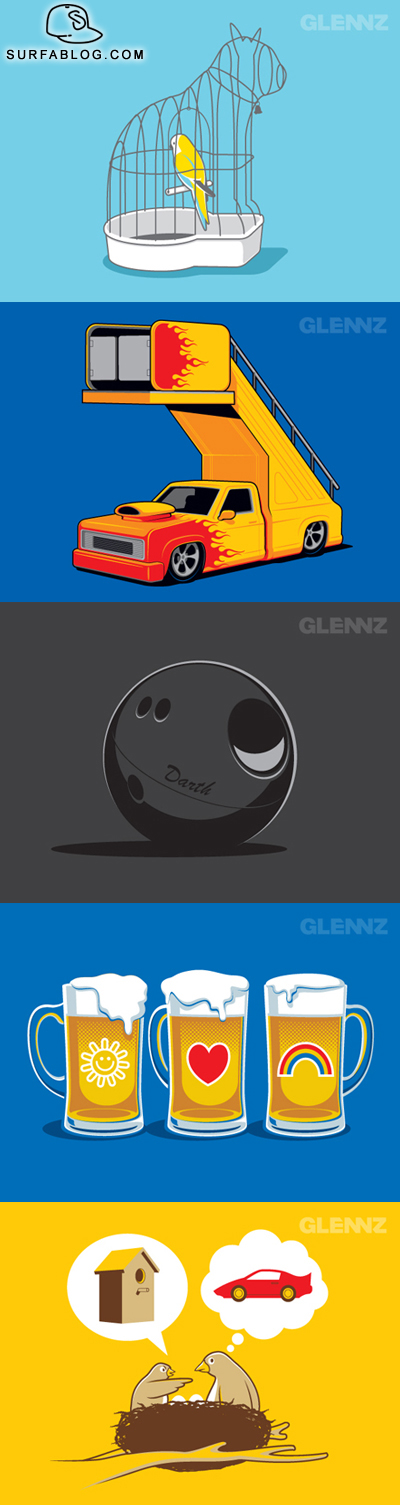 Nuovo post dedicato a Glenn Jones, un grafico geniale che realizza t-shirts. I nomi delle 5 immagini di oggi sono: "Captive", "Modified", "Empire Strike", "Care Beers", "Priorities".