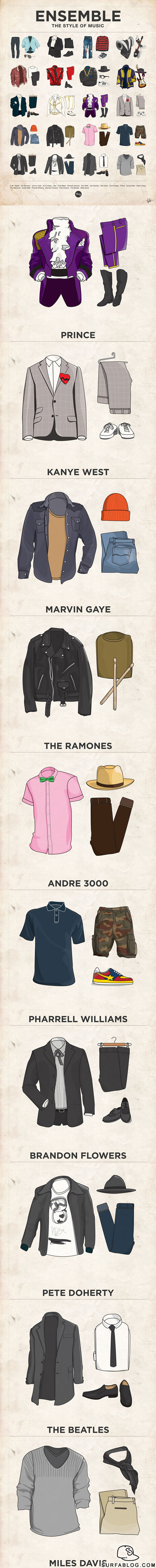 Ensemble ha realizzato questo poster con 20 stili di vestiario, tipici di alcuni artisti storici della musica contemporanea e del passato. Oggi la prima delle 2 parti con: Jim Morrison, Johnny Cash, Kurt Cobain, Kiss, Chet Baker, Michael Jackson, Run DMC, Jimi Hendrix, Bob Dylan, Elvis Presley. Prezzo: 30$ compreso di spedizioni! Great!