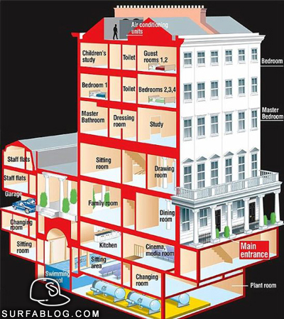Roman Abramovich sta pianificando la trasformazione di 9 appartamenti acquistati a Knightsbridge, Londra, nella casa più costosa del Regno Unito. Il valore complessivo si aggirerà intorno a 150 milioni di sterline pari a 190 milioni di euro. Nelli'immagine eccovi il progetto presentato dal DailyMail.