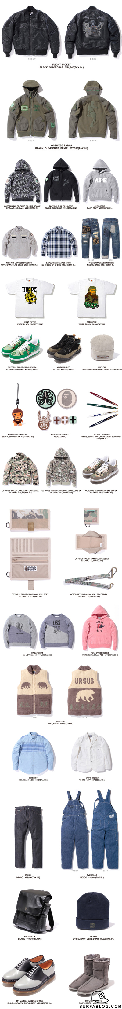 Eccovi tutta la nuova collezione primaverile 2011 targata Bape. Alcuni prodotti sono in collaborazione con Stussy. Giubotti, hoodies, camice, jeans, t-shirts, cappelli, boots, sneakers, portachiavi, penne, toppe, portafogli e tante altre novità.