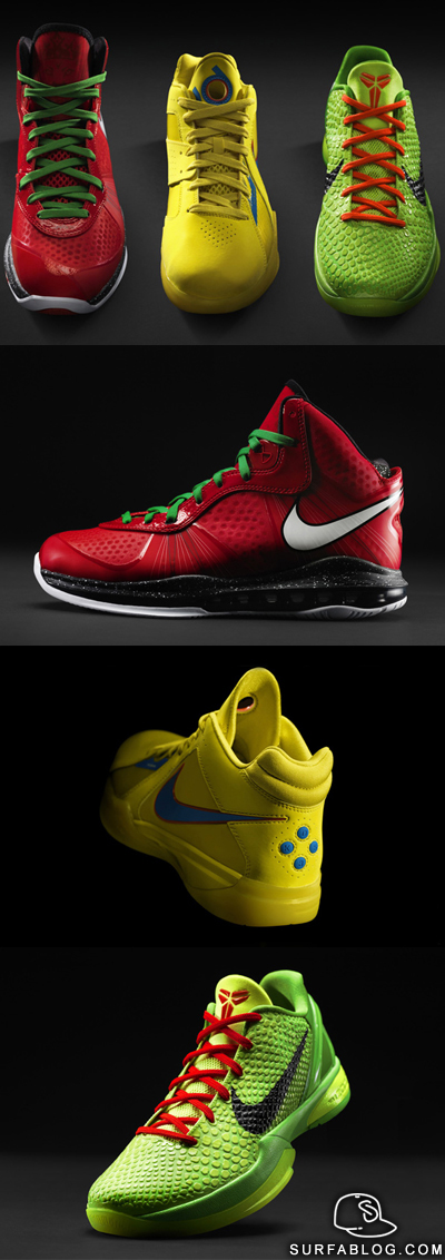 Nike Basketball 2010's Christmas Day Footwear Collection: 3 modelli che riprendono: Lebron VIII, Kobe IV, KD III. Disponibili sul Nikestore.com dal 26 Dicembre.