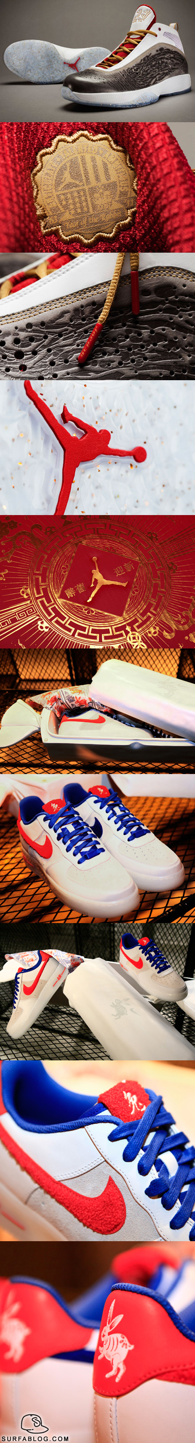 Air Jordan 2011 & Nike Air Force 1 Supreme: Year Of The Rabbit Collection. Il 3 Febbraio 2011 inizierà l'Anno Del Coniglio secondo il calendario lunare cinese. Il rabbit è uno dei 12 animali che compongono il ciclo del passare degli anni nella tradizione del paese asiatico. Il 2011, avendo il simbolo del quarto animale arrivato in soccorso al Buddha, viene considerato un anno molto fortunato. Per l'occasione Jordan e Nike hanno realizzato questi 2 modelli con i colori tipici: rosso, bianco, oro e blu. Prezzi rispettivi: 180$ e 393$.