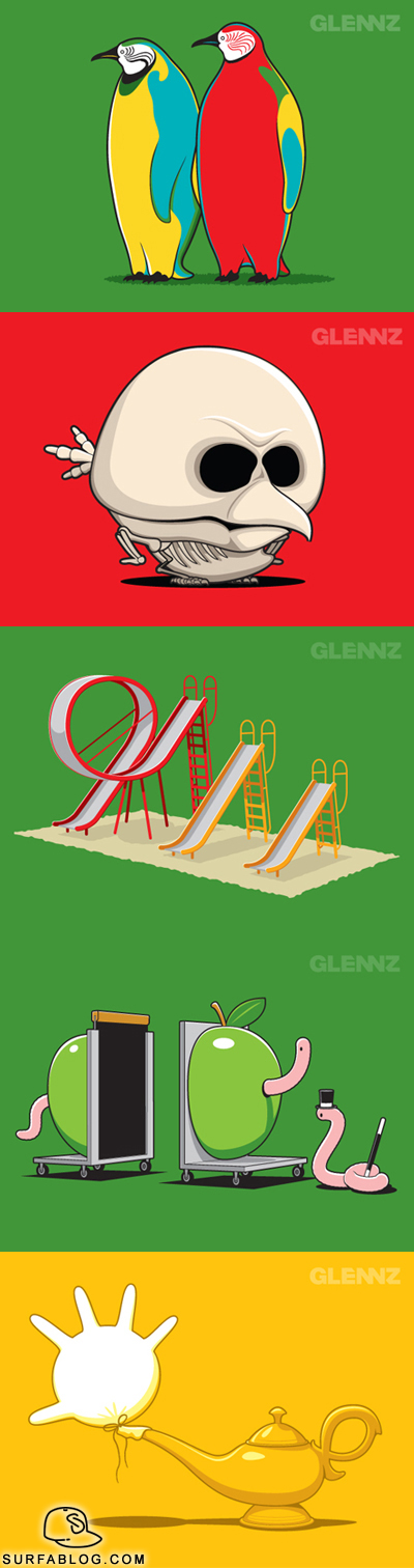 Nuovo post dedicato a Glenn Jones, un grafico geniale che realizza t-shirts. I nomi delle 5 immagini di oggi sono: "Tropical Species", "Iratus Avis", "Extreme Kids", "Worm Magic", "Trap".
