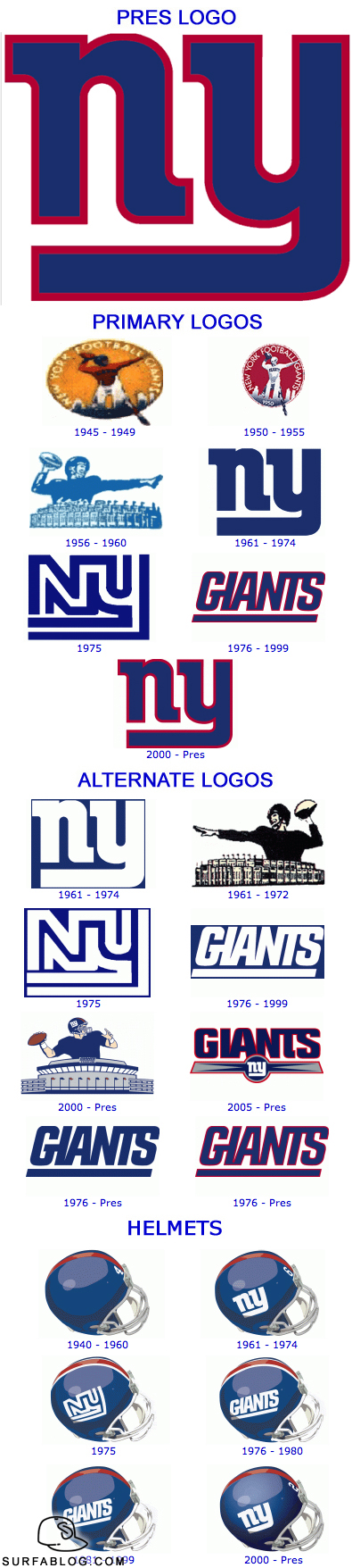 New York Giants: sono una squadra di football americano che milita nell'NFL. Sono stati fondati nel 1925 e fanno parte della Eastern Division della National Football Conference. Hanno vinto 7 volte il Super Bowl, 10 volte Conference e 15 volte la Division. I colori sono: blu, rosso, grigio e bianco.