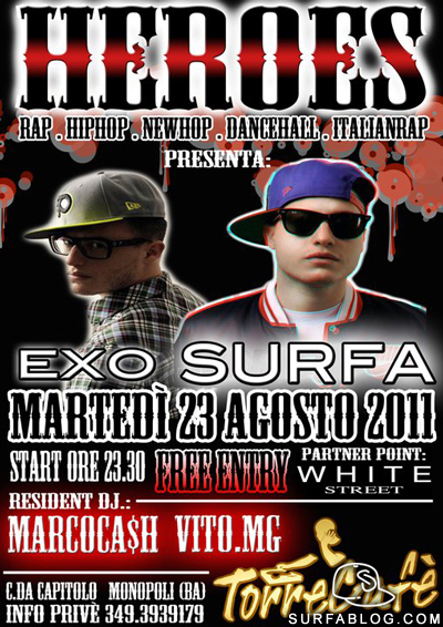Per tutti i supporter nel Sud Italia, Martedì 23 Agosto, io ed Exo faremo un dj set al Torre Cafè di Monopoli (Bari). La serata targata "Heroes" inizierà alle 23.30. Durante il party ci saranno le riprese del video di Max Il Nano con me "Senti Le Urla". Don't miss it!
