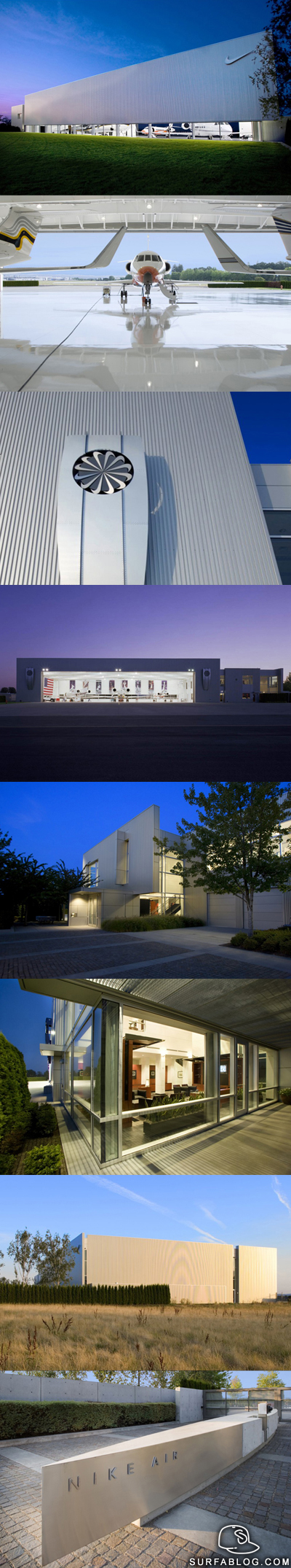 Eccovi le immagini del Nike Air Hangar: 40.000 metri quadri situati nei pressi dell'aeroporto di Hillsboro, a Portland, Oregon. E' un hangar privato proprietà della Nike contenente jet G5 per viaggi di lavoro. In futuro verrà ampliato per fare spazio ad altri aerei. Ora vicino lhangar sono presenti zone di alloggio per piloti e viaggiatori.