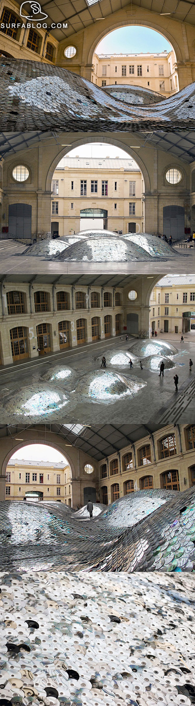 L'artista Elise Morin e l'architetto Clèmence Eliard hanno creato a Parigi un mare metallico con 65.000 vecchi cd. L'opera è stata chiamata "Wastelandscape".