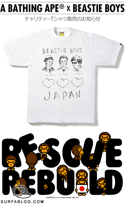 Bape collabora con il trio Beastie Boys per supportare le vittime del terremoto avvenuto in Giappone. La grafica è opera di Mike Mills e sarà disponibile dal 5 Novembre negli stores ufficiali.