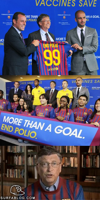 Bill Gates e Josep Guardiola hanno unito le loro forze per lottare contro la polio. La Bill & Melinda Gates Foundation e il Barcellona hanno pubblicato un video di sensibilizzazione contro questa malattia in occasione della giornata mondiale della polio. Tra le azioni di sensibilizzazione, sabato scorso al Camp Nou prima della partita tra Barcellona e Siviglia, i giocatori del club più forte d'Europa hanno indossato una t-shirt con lo slogan "End Polio" il numero 99, ovvero la percentuale in cui si vuole eliminare la malattia.