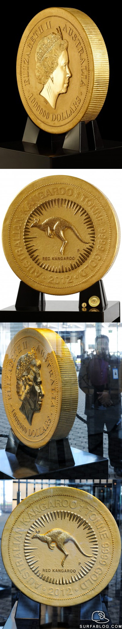 In Australia, la zecca di Perth ha coniato la più grande e preziosa moneta d'oro al mondo. Il suo peso è di oltre una tonnellata di oro puro ed il suo valore è di circa 45 milioni di euro. A lavorarla per quasi un anno, sono stati 12 artisti e tecnici. La moneta misura 80 cm di diametro ed è spessa 12. Sul retro c'è l'effige della regina Elisabetta II.