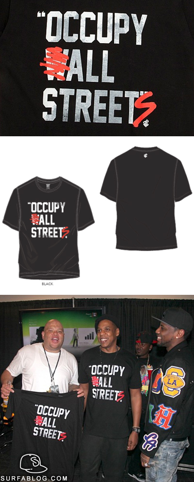Dopo aver appoggiato gli indignati, Jay-Z ha lanciato una linea di t-shirt con lo slogan "Occupy "Wall Street", continuando quindi a sostenere il movimento. Un pò di polemica è sorta sul web, quando ci si è chiesto se i guadagni andranno tutti nelle tasche del rapper o meno. Business Insider ha dichiarato che non è stato ancora fatto nessun annuncio ufficiale su un eventuale supporto finanziario al movimento. La grafica "Occupy Wall Street" ha una correzione in rosso che modifica la scritta in "Occupy All Streets". Tra gli esponenti del mondo Hip-Hop che hanno appoggiato gli indignati ci sono: Russell Simmons, Kanye West e Talib Kweli.