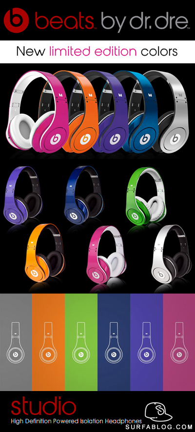 Beats By Dr.Dre: New Limited Edition Colors. Eccovi le nuove colorazioni delle Beats in edizione limitata. Sono disponibili per un breve periodo fino alla fine del 2011. I colori in questione sono: blu, arancione, viola, argento, verde e rosa.