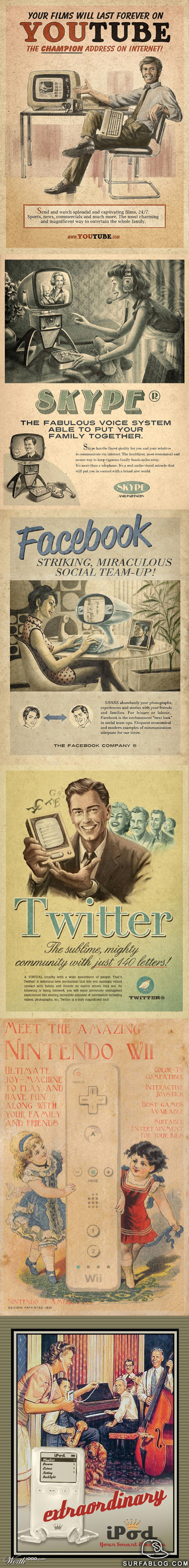 : Ecco alcuni spot "old School" che però pubblicizzando cose attuali: da YouTube a Facebook e così via. Queste bellissime grafiche ci fanno pensare come sarebbero state pubblicizzate molto fa.