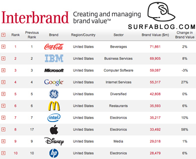 I brand italiani di maggior successo del 2011 sono: Gucci (al 39esimo posto), Armani (al 93esimo posto) e Ferrari (al 99esimo posto).