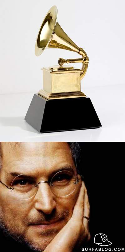 I Grammy, ovvero gli Oscar della musica, hanno deciso di assegnare un riconoscimento a Steve Jobs, "per aver contribuito a creare prodotti e tecnologie che hanno trasformato il modo in cui consumiamo la musica, la televisione, i film e i libri". Oltre a Jobs, il 12 Febbraio a Los Angeles, riceveranno un premio speciale anche Diana Ross e Tom Jobim.