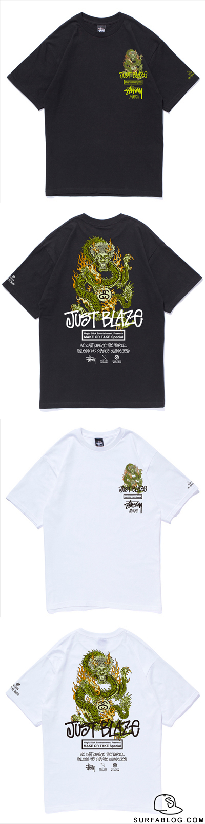Il super producer Just Blaze ha collaborato con Stussy Japan per una t-shirt in edizione speciale. Disponibile dal 3 Febbraio negli stores ufficiali. E' in 2 colori: blu e bianco ed è dedicata all'Anno del Drago. Nice!