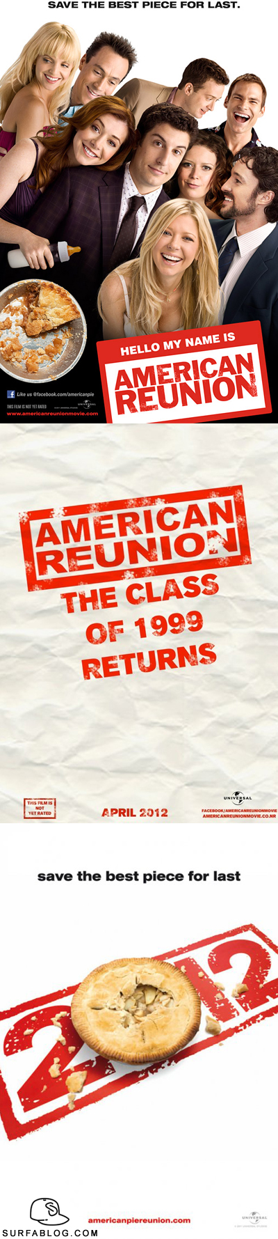 American Pie American Reunion: è l'ottavo capitolo della saga di "American Pie" con tutti i gli attori dei primi 3 capitoli. Negli Stati Uniti uscirà nei cinema il 6 Aprile, mentre in Italia (in cui verrà chiamato "American Pie Ancora Insieme") uscirà il 4 Maggio.