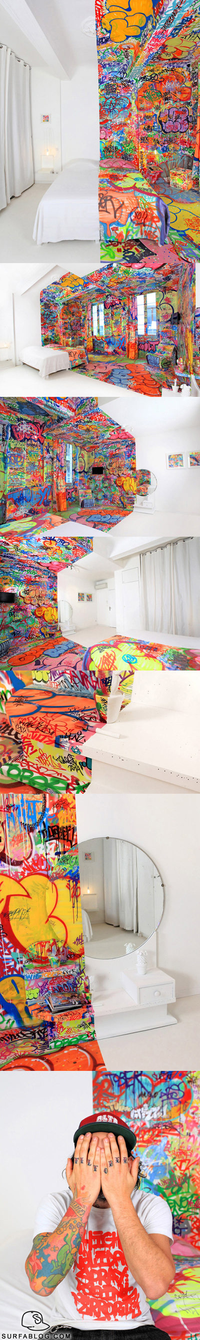 Dal TigreBlog.Com: L'hotel Au Vieux Panier a Marsiglia, in Francia, ha collaborato con l'artista Tilt per realizzare questa stanza. Si chiama appunto "Half Graffiti Hotel Room" e il nome dice tutto. Wow!