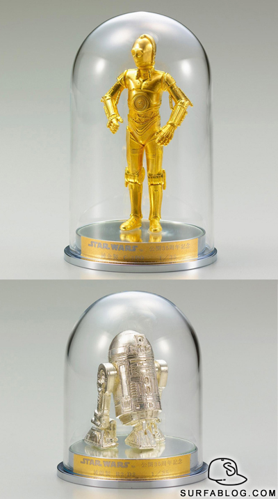 Star Wars celebra il suo 35esimo anniversario con le sculture dei 2 robot più famosi. Eccovi R2-D2 in argento e C-3PO in oro. Ne sono stati prodotti solo 35 pezzi per ognuno. Il primo viene 1.800 $ e il secondo 6.000 $. Disponibili da Maggio 2012.
