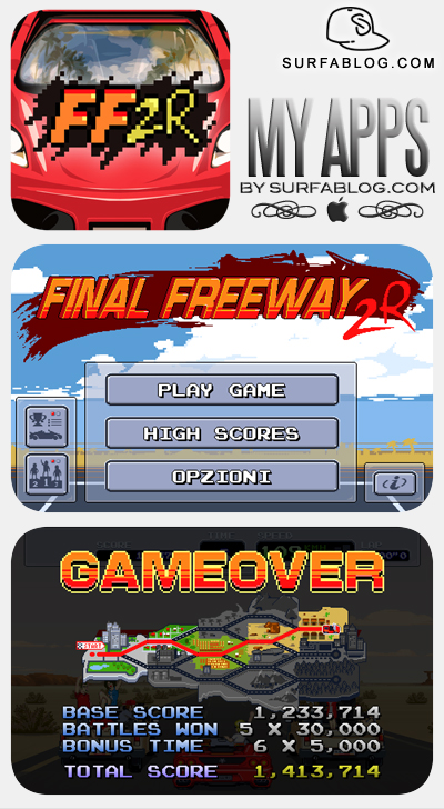 Descrizione: Final Freeway 2: è il seguito del popolare "Final Freeway". Con una tipica grafica in 2d molto pulita e fluida è un'applicazione con 14 tracciati tra cui scegliere e bisogna arrivare ad ogni lap prima che finisca il tempo a disposizione. 3 personaggi con diverse caratteristiche di guida, 3 livelli di difficoltà, 6 modalità di controllo e sistema a bivi per scegliere il percorso in tempo reale.