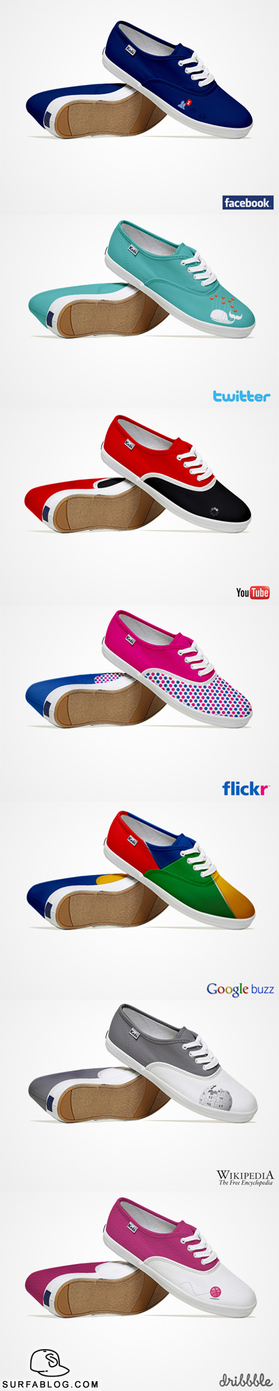 Keds Social Media Shoes. In ordine: Facebook, Twitter, YouTube, Flickr, Google Buzz, Wikipedia, Dribbble.