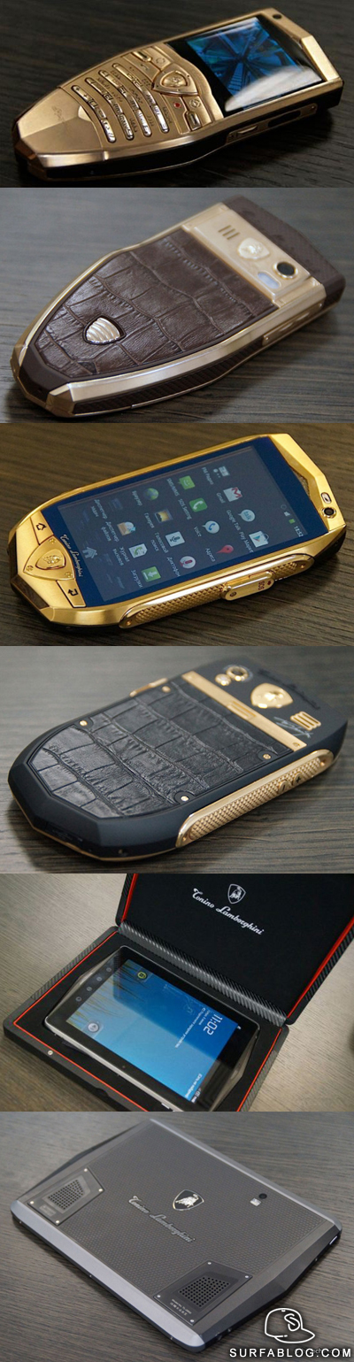 Lamborghini ha realizzato 2 cellulari e un tablet Android per il mercato russo. A catturare l'attenzione è il loro prezzo e il materiale con cui sono stati realizzati: l'oro. Sono 3 modelli: il Lamborghini TL688 (prezzo: 2.134 $) ed il Lamborghini TL700 (prezzo: 2.750 $). Per concludere c'è il tablet chiamato Lamborghini L2800 (prezzo: 2.268 $).