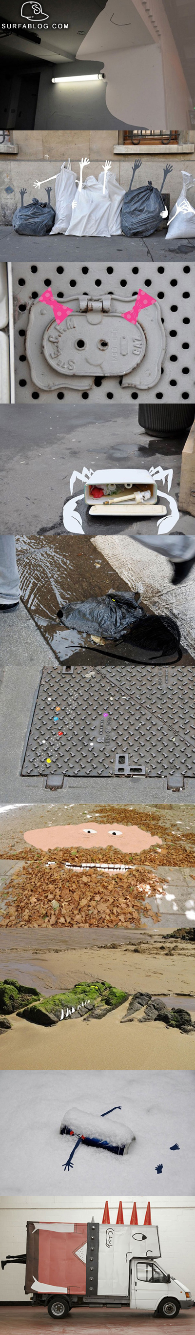 Sandrine Boulet ha realizzato queste opere di street art in giro per Parigi. L'artista francese le ha chiamate "Clever Street Art" ed ha spiegato "Quando sei un bambino passi il tuo tempo sdraiato sull'erba visualizzando ed immaginando delle figure guardando le nuvole. Bene, io non ho mai smesso!"