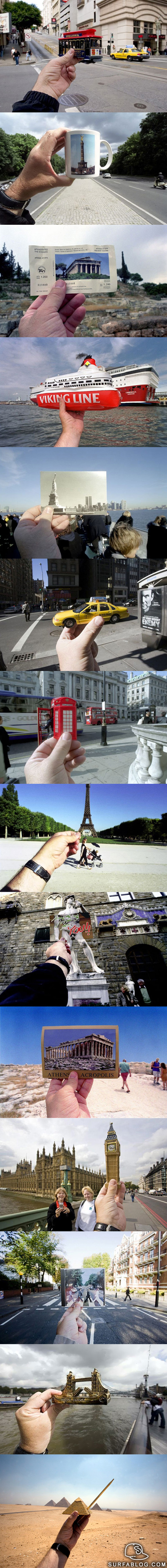 Michael Hughes: è il fotografo tedesco che ha realizzato questi scatti per l'opera chiamata "Souvenir Optical Illusions" ovvero illusioni ottiche con i souvenir. Genio!