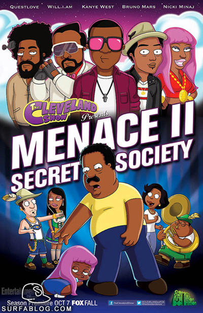 Nell'Agosto del 2011 avevo pubblicato la notizia che Kanye West, Nicki Minaj, Bruno Mars, Will.I.Am e ?uestlove sarebbero apparsi in un episodio di "The Cleveland Show" (per saperne di più clicca qui). Dopo quasi un anno eccovi la conferma: il 7 Ottobre andrà in onda su Fox l'episodio "Menace II Secret Society" con i 5 artisti in versione cartone animato. Non è la prima volta che degli artisti Hip-Hop ed R&B facciano la loro comparsa in "The Cleveland Show". Il primo fu Kanye West (per saperne di più clicca qui) e poi Justin Timberlake, Will.I.Am, e T-Pain, gli ultimi 2 hanno solo prestato la loro voce a 2 nuovi personaggi della serie animata (per saperne di più clicca qui).