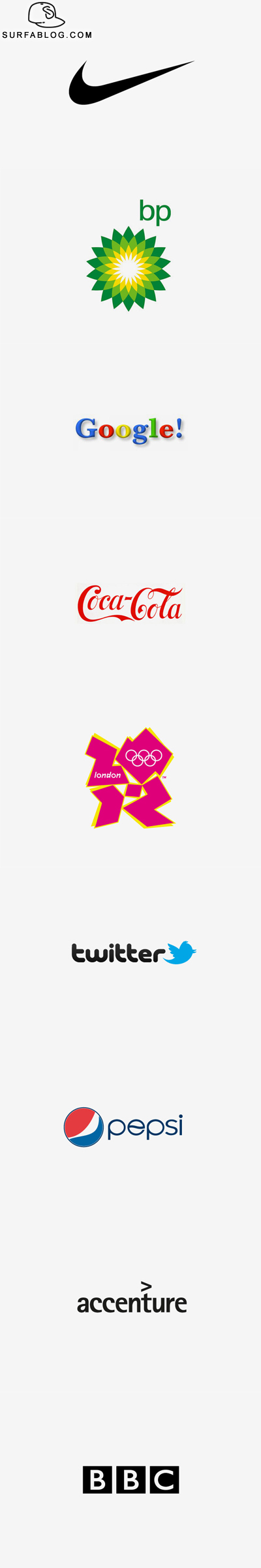 BP: il logo è stato realizzato dall'agenzia Ogilvy & Mather. I colori sono 4: bianco, giallo, verde chiaro e verde scuro e rappresenta l'energia in varie forme. Il prezzo: 211 milioni di $.