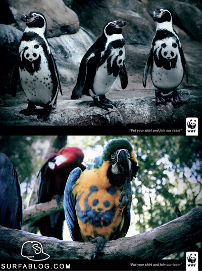 WWF ha realizzato questi spot con lo slogan "Indossa la tua maglietta e fai parte della nostra squadra" con 2 specie protette che hanno il logo del WWF sul loro petto, come se indossassero una t-shirt. L'idea è del Creative Child Studio Studios di Rio de Janerio in Brasile.