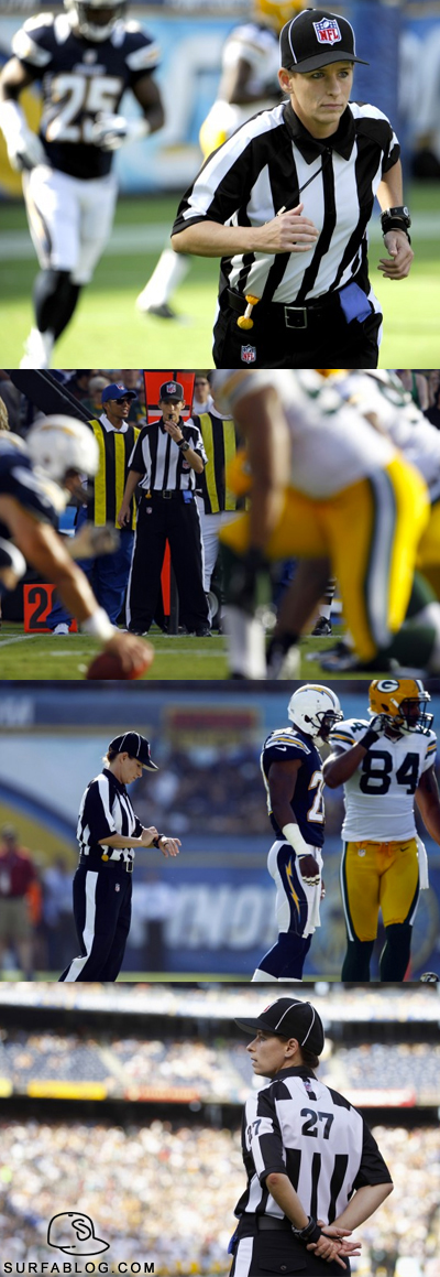 Eccovi delle immagini "storiche" per il football americano: si tratta di Shannon Eastin, la prima donna ad aver arbitrato una partita di NFL. Shannon ha 42 anni e viene da Tempe in Arizona e dopo 16 stagioni da arbitro nella Mid Eastern Athletic Conference del college football, ha svolto magnificamente il suo ruolo nella gara di National Football League tra Green Bay Packers e San Diego Chargers.