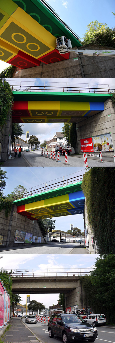 Megx ha recentemente trasformato un normale ponte nella città di Wuppertal in Germania in un ponte di Lego. Il writer ha impiegato 4 settimane per dipingere il ponte ed ottenere questo risultato.