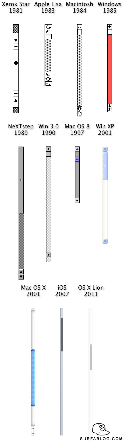 Eccovi un'immagine che rappresenta i 20 anni dell'evoluzione delle barre di scorrimento, dal 1981 ad oggi. Ve le ricordate?