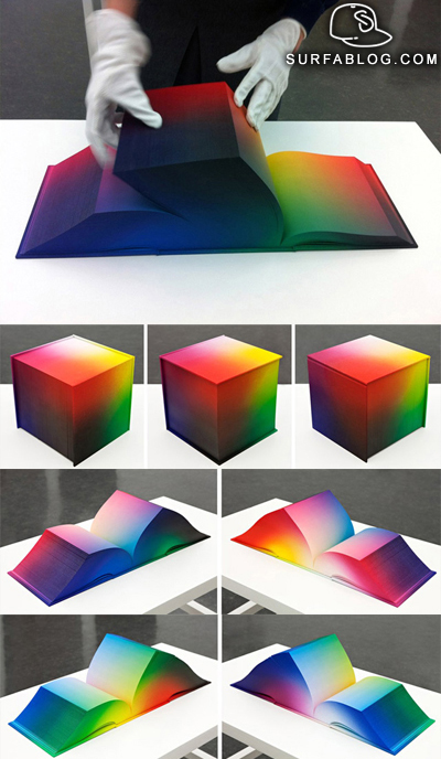 Dal TigreBlog.Com: Eccovi il primo libro RGB. Creato da Tauba Auerbach, è un tomo gigante stampato in ogni possibile sfurmatura sulla gamma RGB. L'RGB è il nome di un modello di colori; diversamente dalle immagini a livelli di grigio, quest'ultimo è di tipo additivo e si basa sui 3 colori: rosso (red - R), verde (green - G) e blu (blue - B), da cui appunto il nome RGB. Un'immagine può essere infatti scomposta, attraverso filtri o altre metodiche, in questi colori base che miscelati tra di loro danno tutto lo spettro dei colori visibili, con l'eccezione delle porpore.