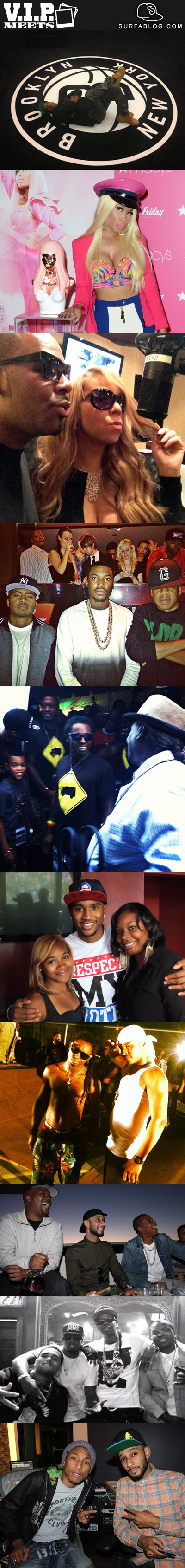 Nuovo VIP Meets oggi! Nella prima foto: Jay-Z sdraiato a centro del campo dei Brooklun Nets nella nuova arena del Barclays Center (per saperne di più clicca qui). Nicki Minaj da Macy's che presenta il suo profumo "Pink Friday" (per saperne di più clicca qui). R.Kelly e Mariah Carey in studio a Chicago per registrare un nuovo pezzo. Nella quarta: Nas, Meek Mill e Jay-Z al 40/40 Club di New York per la presentazione di NBA 2K13 (per saperne di più clicca qui). Nella quinta: Lil Wayne che ha aperto uno skatepark a New Orleans. Nella sesta: Trey Songz che ha supportato in Virginia la campagna elettorale di Barack Obama. Nella settima: Lil Wayne e T.I. sul set del nuovo video "Ball". Nell'ottava: Memphis Bleek, Swizz Beatz e Jay-Z celebrano la fine dell'Estate a New York. Nella nona: Chris Brown, Diddy, 2 Chainz e Sean Kingston alla data di Los Angeles del T.R.U. Story Tour. Per concludere: Pharrell Williams e Swizz Beatz in studio per una nuova collaborazione.