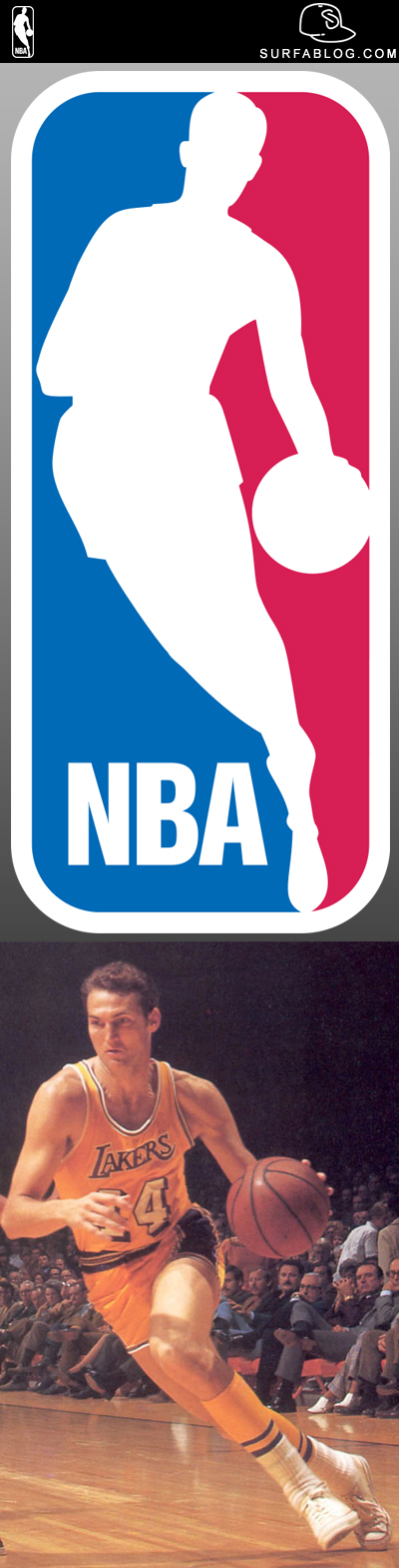 Era il 1969 quando la National Basketball Assiociation (NBA) si stava battendo contro l'American Basketball Association (ABA). Una sfida in cui erano in ballo i fan, i giocatori, i media e milioni di dollari. Il fondatore dell'NBA Alan Siegel, fece sapere che prese una foto da Sport Magazine con l'All-Star Jerry West. La dinamica e la tenacia del giocatore hanno catturato l'attenzione di Siegel che decise di trasformare quell'immagine nel logo della lega. Attualmente il logo NBA genera 3 miliardi di $ l'anno e simboleggia l'immagine del basketball professionista.